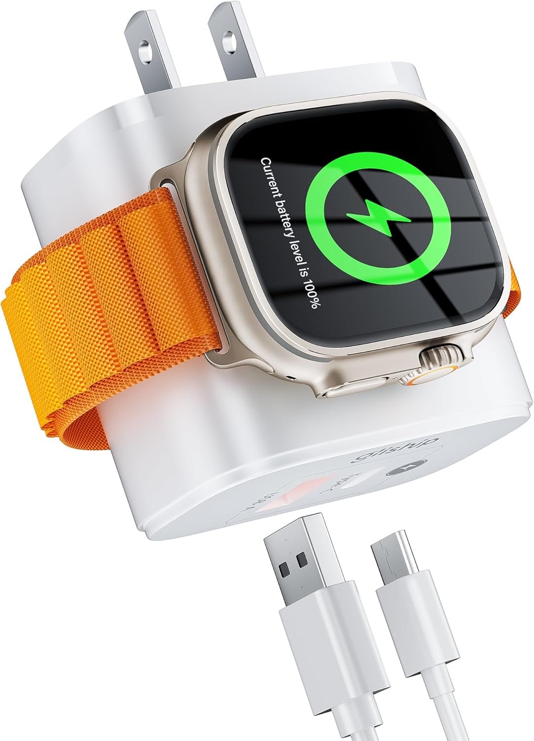 【Upgraded Apple Watch Charger】Upgraded cordless charger block with a built-in 3W magnetic wireless charger stand, compatible with Apple Watch. No extra cables are needed, allowing you to easily charge your iWatch at home, in the office, or while traveling. (This wireless charger only supports Apple Watch)