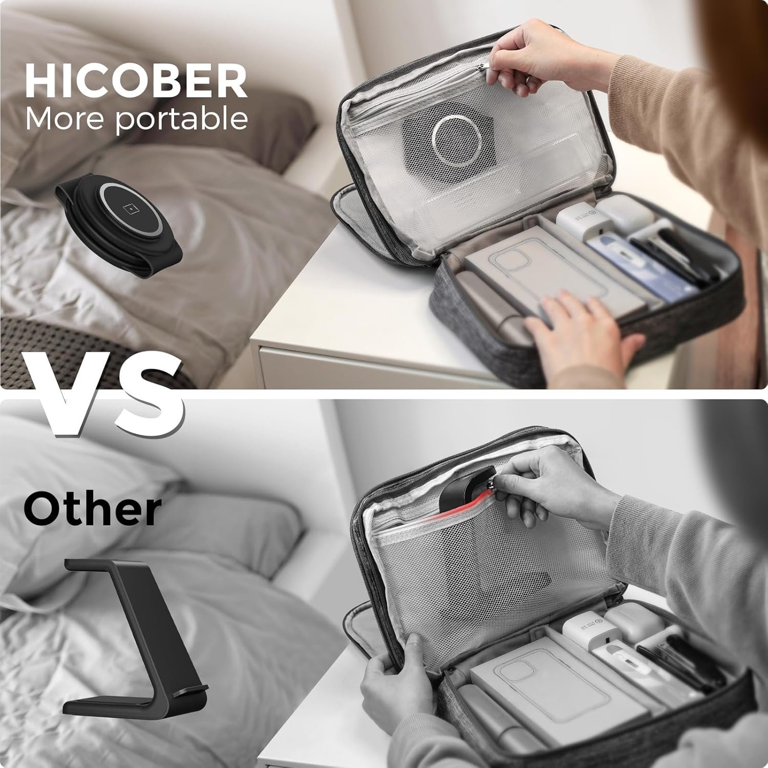 Travel Essentials: Portable and Foldable Travel Charger: This foldable travel charger stand is a great addition to your travel gear, lightweight and portable, easy to pack in a bag or suitcase, providing a stable charging experience during your travels or business trips; It also doubles as a phone stand, allowing you to adjust it horizontally or vertically for easy movie-watching or FaceTime calls