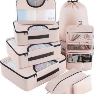 8PC Set Large Capacity:Different sizes of travel essential bag sets can store classified clothes, dirty clothes, bras, underwear, footwear, cosmetics, towels, toiletries and electronic accessories. It is a good travel accessories companion.