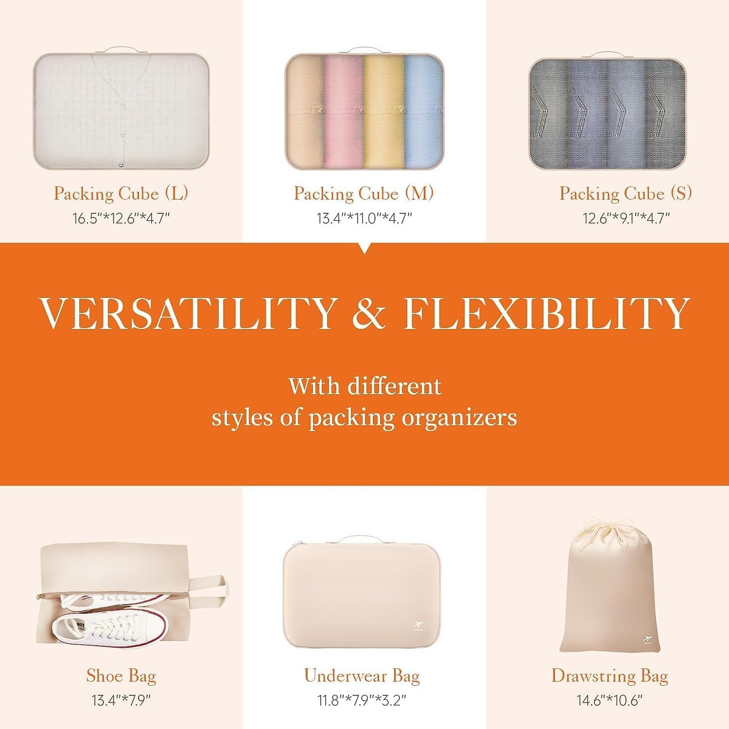 Are you tired of cramming all your essentials into the suitcase and finding that it’s hard to get what you want? Don’t worry, let HOTOR travel packing cubes set help you to sort, organize and find your things in a flash. Say goodbye to all your travel woes!