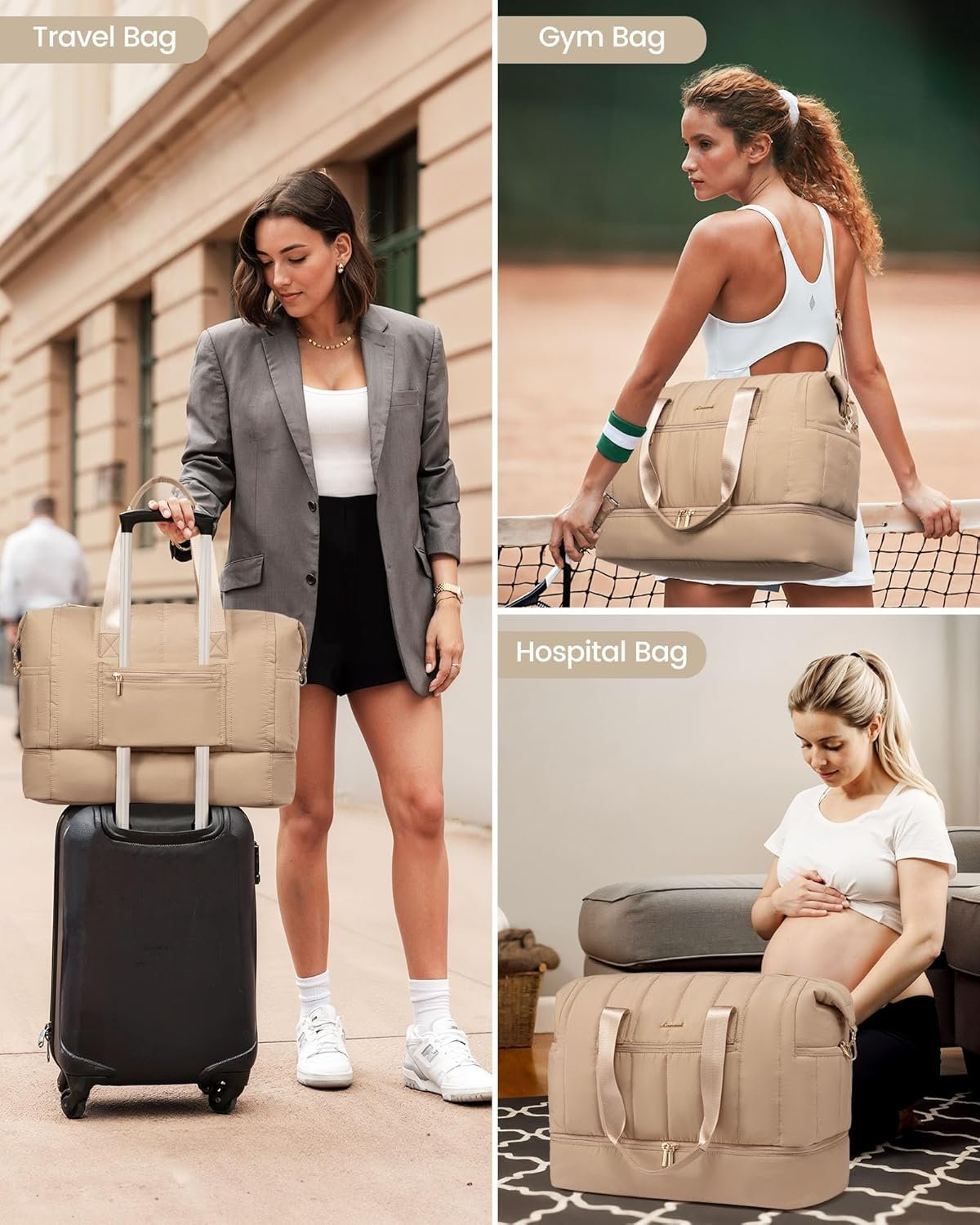 Versatile for Every Adventure: Whether you’re heading to the gym, embarking on airplane travels & RV travels, or looking for a chic hospital bag for women labor delivery, this duffle bag adapts to every aspect of your active lifestyle.