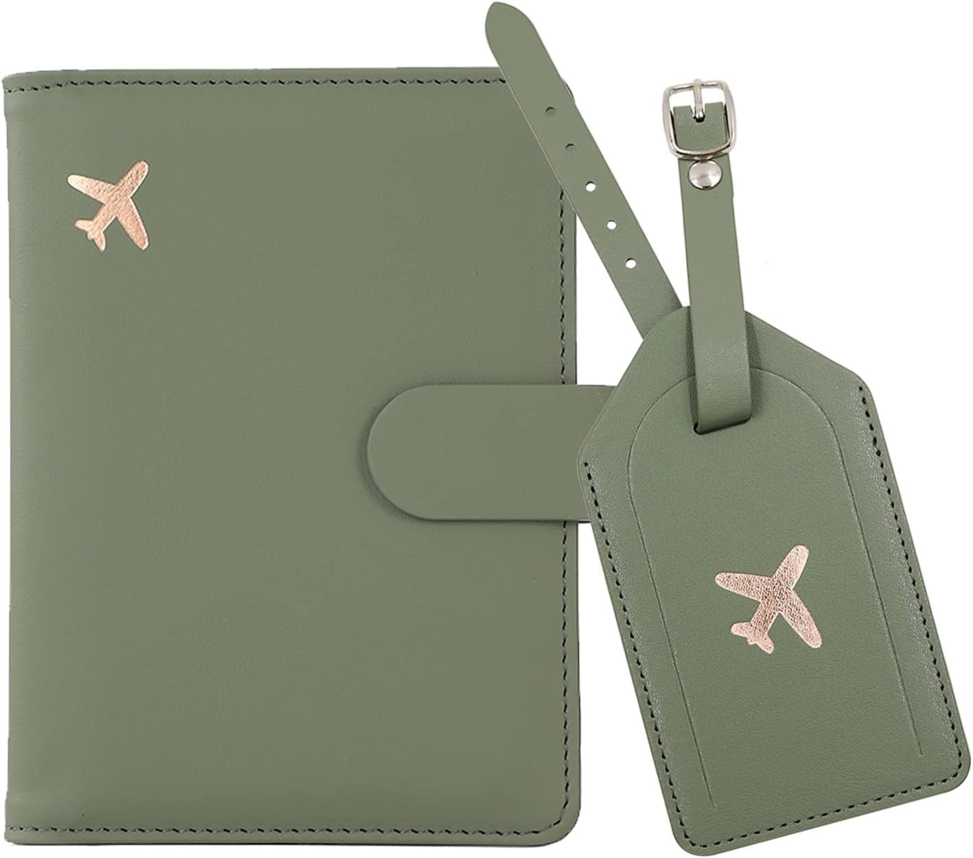 Melsbrinna Rfid Passport Holder for Travel women/Men Set Travel Suitcase Tag, Cute Passport Wallet Rfid Blocking Card Slots, Rfid Passport Cover/CaseTravel Wallet (Green)