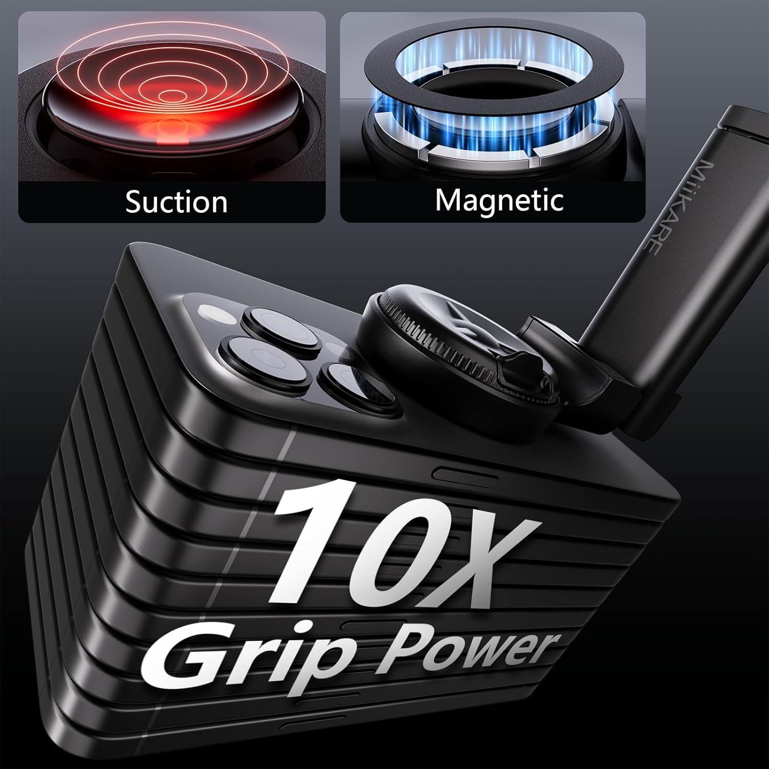 A Practical and Versatile Gadget: This portable magnetic phone holder offers endless possibilities. It can securely hold your phone in various orientations – vertical or horizontal. You can attach the travel phone holder to a luggage handle, tray table, desktop, chair, shelf, bed, book, power bank, or even use it as a short selfie stick.