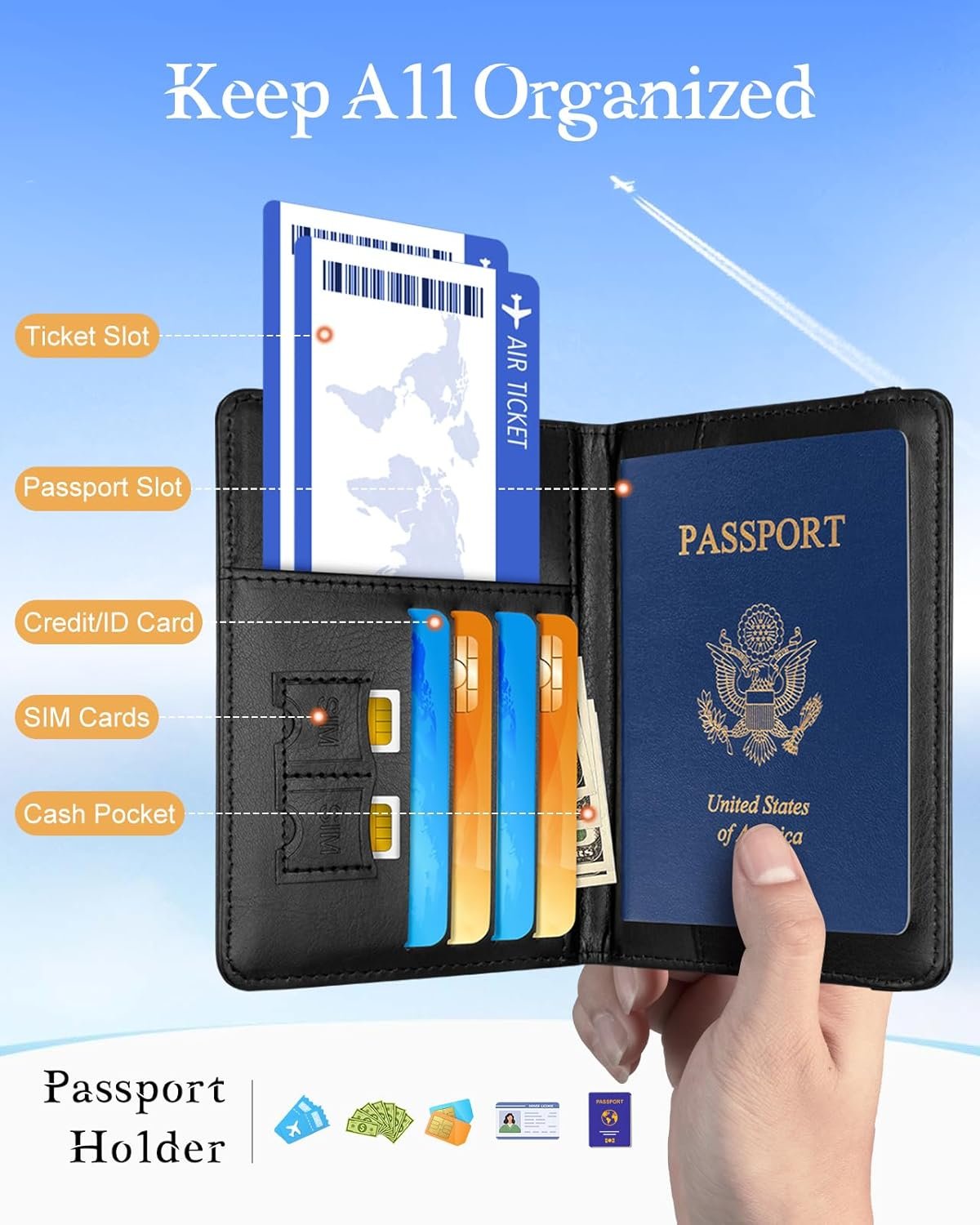 Multifunctional Storage Solution – In addition to holding your passport,this holder is designed with versatility in mind.Your boarding pass,credit card, cash,ID card,and even two SIM cards can all be placed in the compartment where it is cleverly integrated.A thoughtful strap design ensures that all your essentials are safe,whether you’re in airport security or exploring a new city.